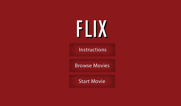 Once you have selected a movie and returned to the Flix app, there should be a "Start Movie" button: